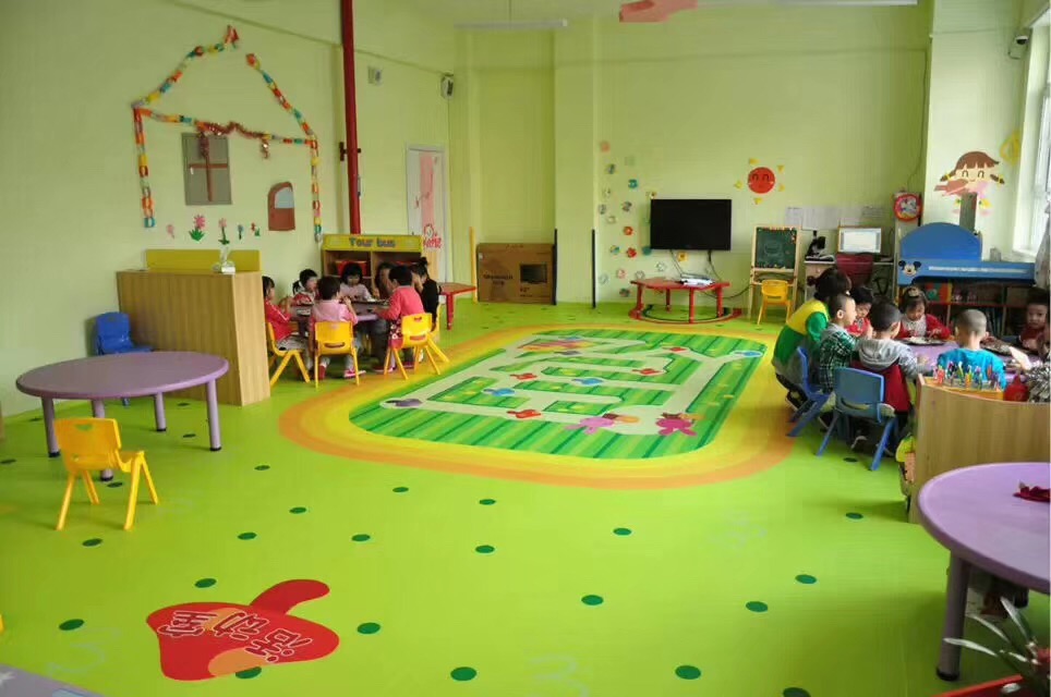 幼儿园地板胶品类繁多,色彩鲜亮